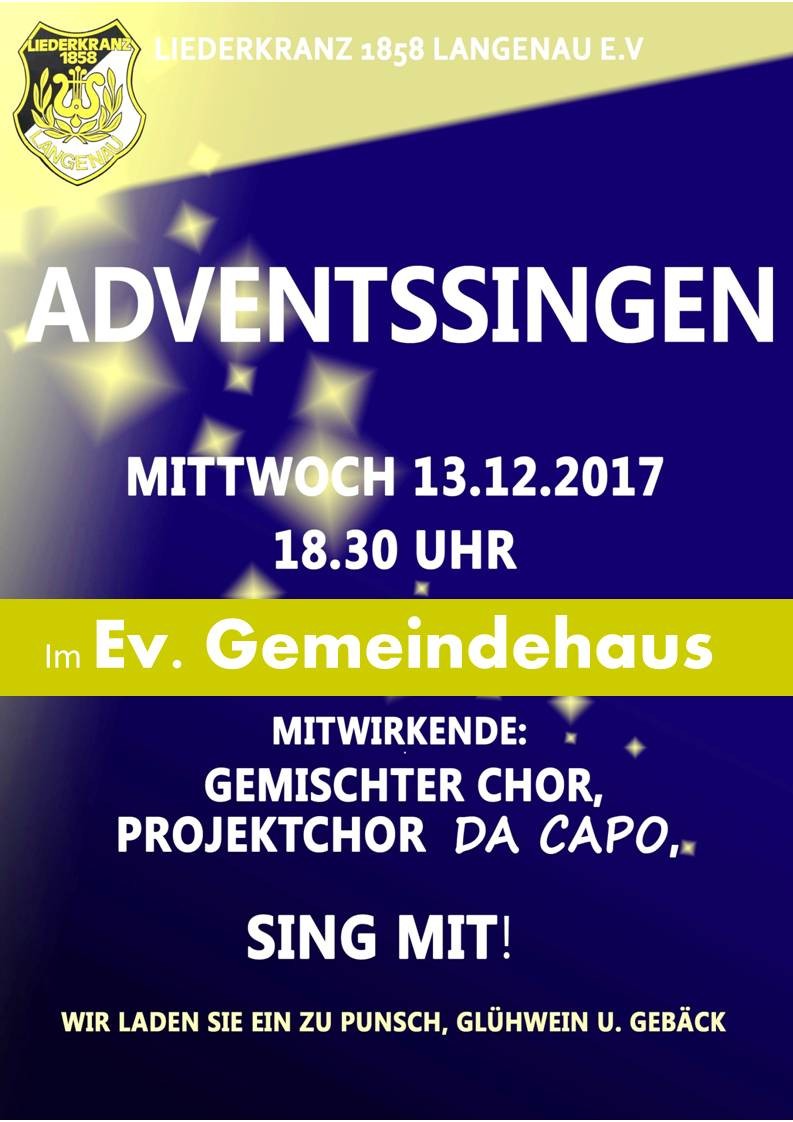 Auch dieses Jahr kamen wieder zahlreiche Besucher zum Adventssingen des Liederkranzes ins ev. Gemeindehaus. Der neue Chor da capo bekam die Gelegenheit, sein Können unter Beweis zu stellen. Was ihm vortrefflich gelang. Ein wichtiges Anliegen des Veranstalters ist es auch, die Besucher mit gemeinsamen Liedern in die nun folgende Weihnachtszeit ein zu stimmen .